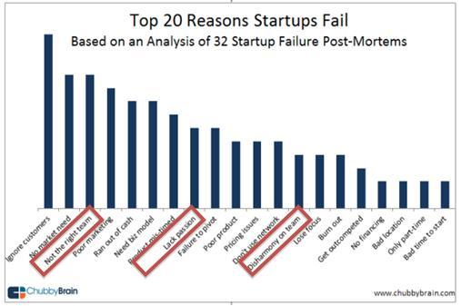En resumen, está claro que el éxito de un start-up no radica tan solo en un buen producto o una buena idea. Tal como demuestra la gráfica del análisis de Chubbybrain de las 20 razones por las cuáles los start-ups fracasan, se hace presente la importancia de construir una base sólida para poder gestionar y maximizar las competencias de este equipo de trabajo multidisciplinario.